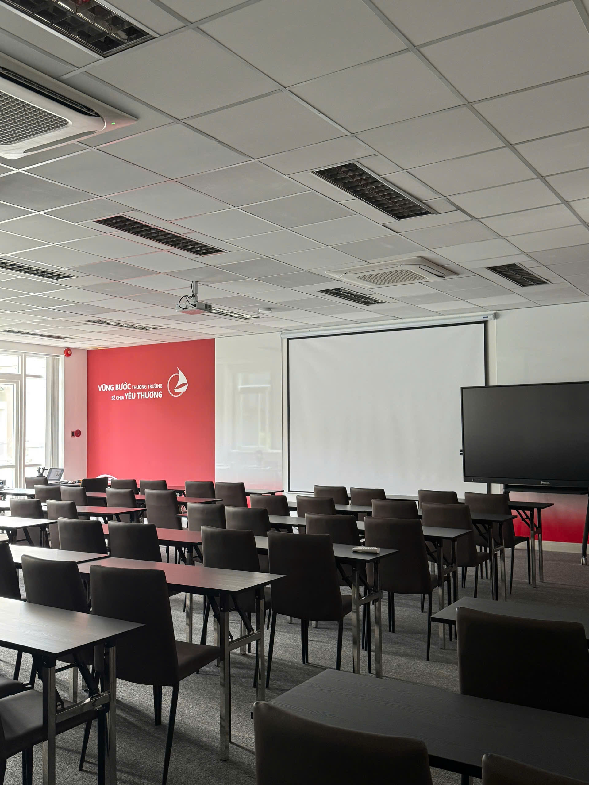 Được thiết kế rộng rãi, thoáng mát, thích hợp cho các buổi đào tạo, hội thảo quy mô lớn và sự kiện doanh nghiệp. Không gian chuyên nghiệp, có sẵn lễ tân hỗ trợ và trang thiết bị đầy đủ, đáp ứng nhu cầu cho lớp học hoặc hội nghị đông người. Với sức chứa lên đến 100 người.