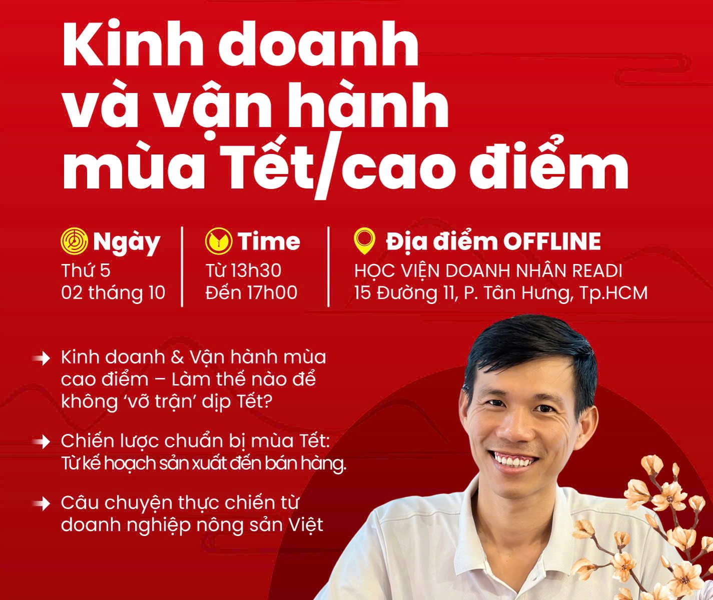 📣 [CAFE TALK 2 – KHU VỰC HCM] KINH DOANH VÀ VẬN HÀNH MUA TẾT/CAO ĐIỂM 🎤 DIỄN GIẢ: Anh Nguyễn Văn Bi – CEO Nonglamfood – người trực tiếp quản lý các dự án Tết và xuất khẩu …